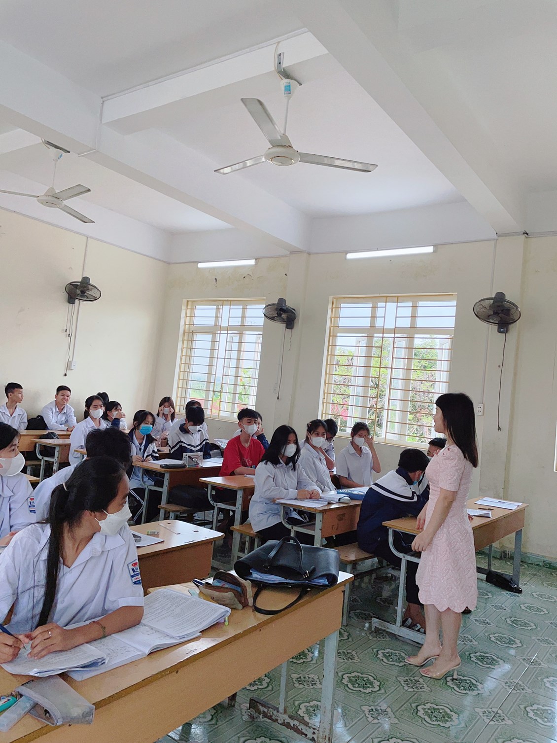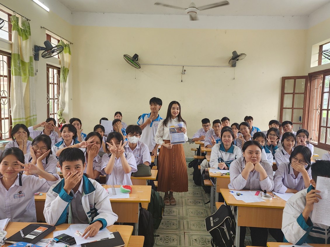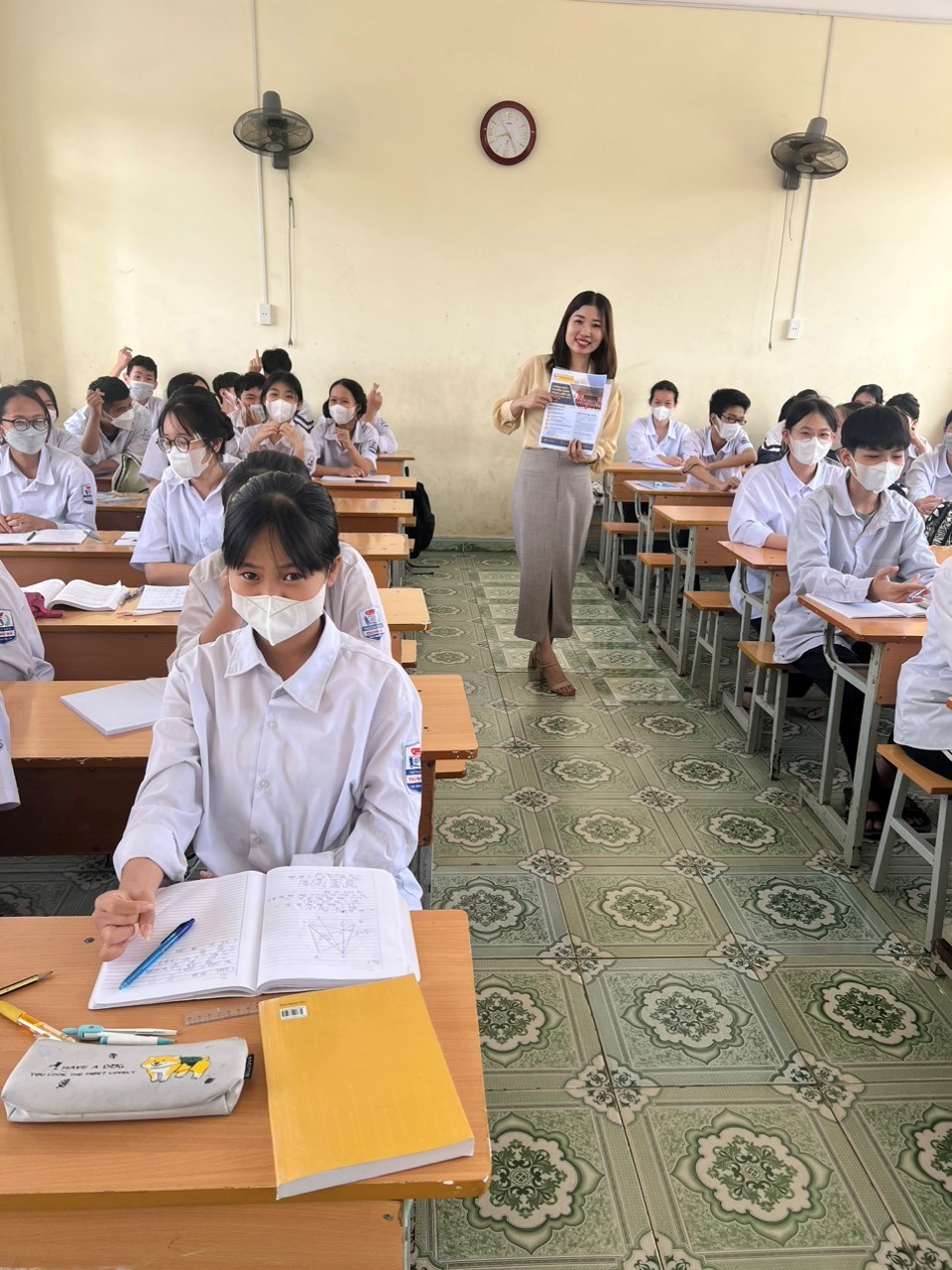 Các cô giáo trong Đoàn tuyển sinh không quản ngại vất vả, khó khăn lên đường đến các trường THCS trên địa bàn huyện làm công tác tuyên truyền vận động chiêu sinh học trò.