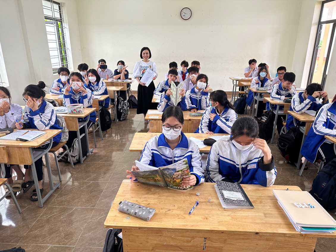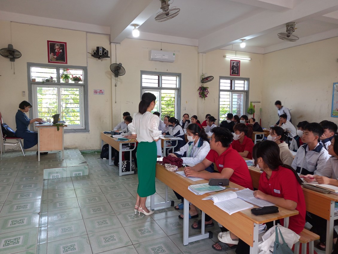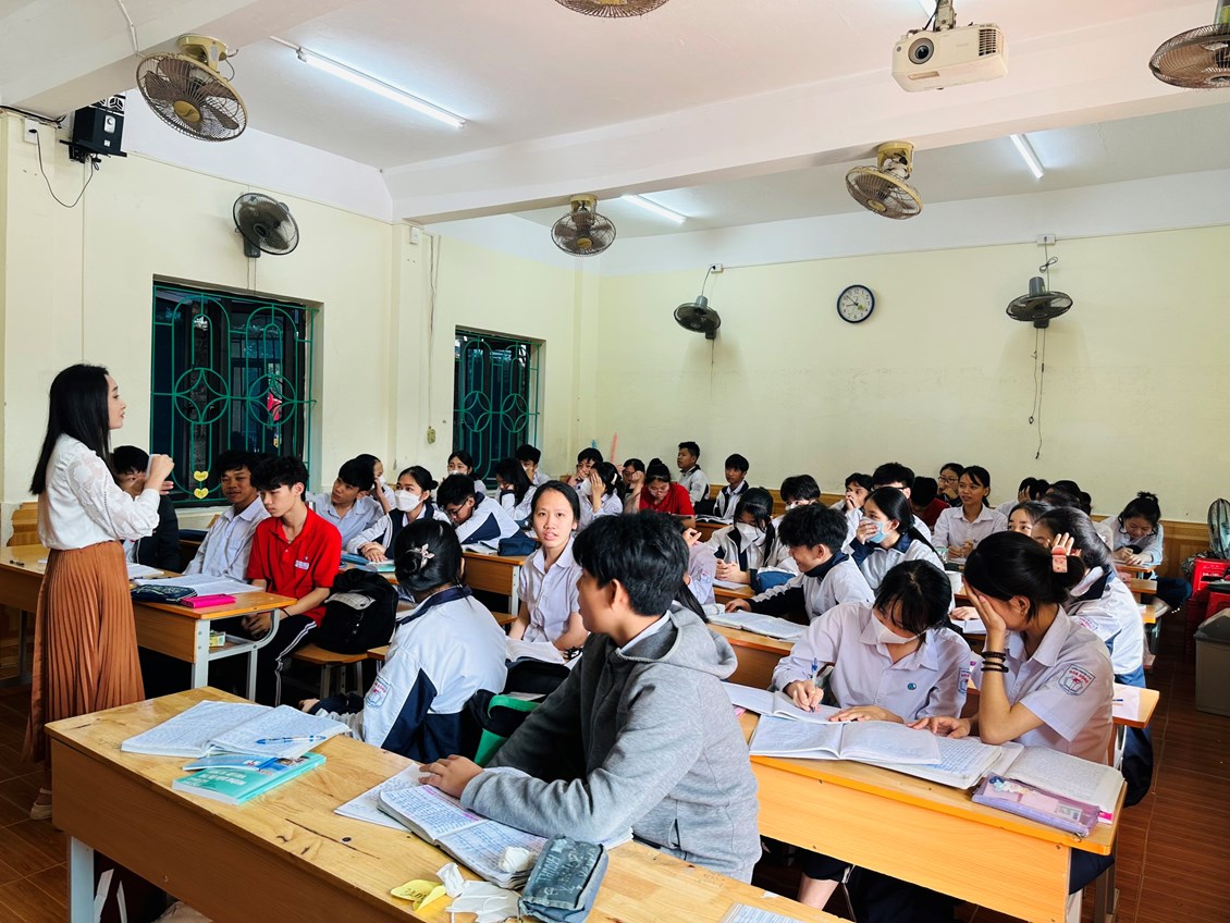Các cô giáo trong Đoàn tuyển sinh không quản ngại vất vả, khó khăn lên đường đến các trường THCS trên địa bàn huyện làm công tác tuyên truyền vận động chiêu sinh học trò.