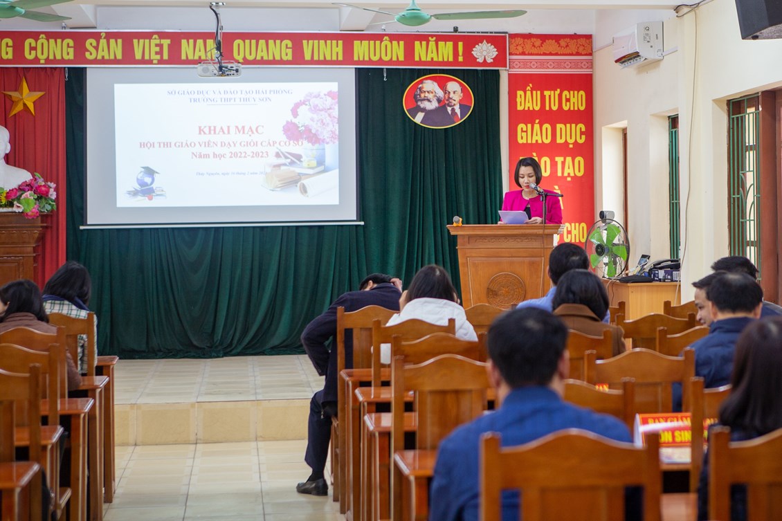Cô Phạm Thị Ngọc Dao – PHT nhà trường đã thông qua quyết định tổ chức hội thi cấp trường và gửi lời chúc đến các giáo viên bình tĩnh, tự tin, hoàn thành tốt phần thi Trình bày giải pháp trước hội đồng ban giám khảo và phần thi Thực hành 01 tiết dạy.