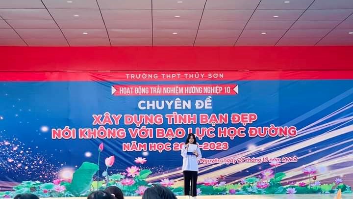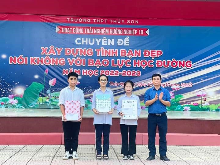 Chuyên đề "Xây dựng tình bạn đẹp, nói không với bạo lực học đường" năm học 2022-2023 của trường THPT Thủy Sơn. Đây là một trong những hoạt động chủ đề nằm trong Hoạt động trải nghiệm, hướng nghiệp dành cho học sinh khối 10 do Đoàn thanh niên phối hợp với Ban chuyên môn nhà trường tổ chức.