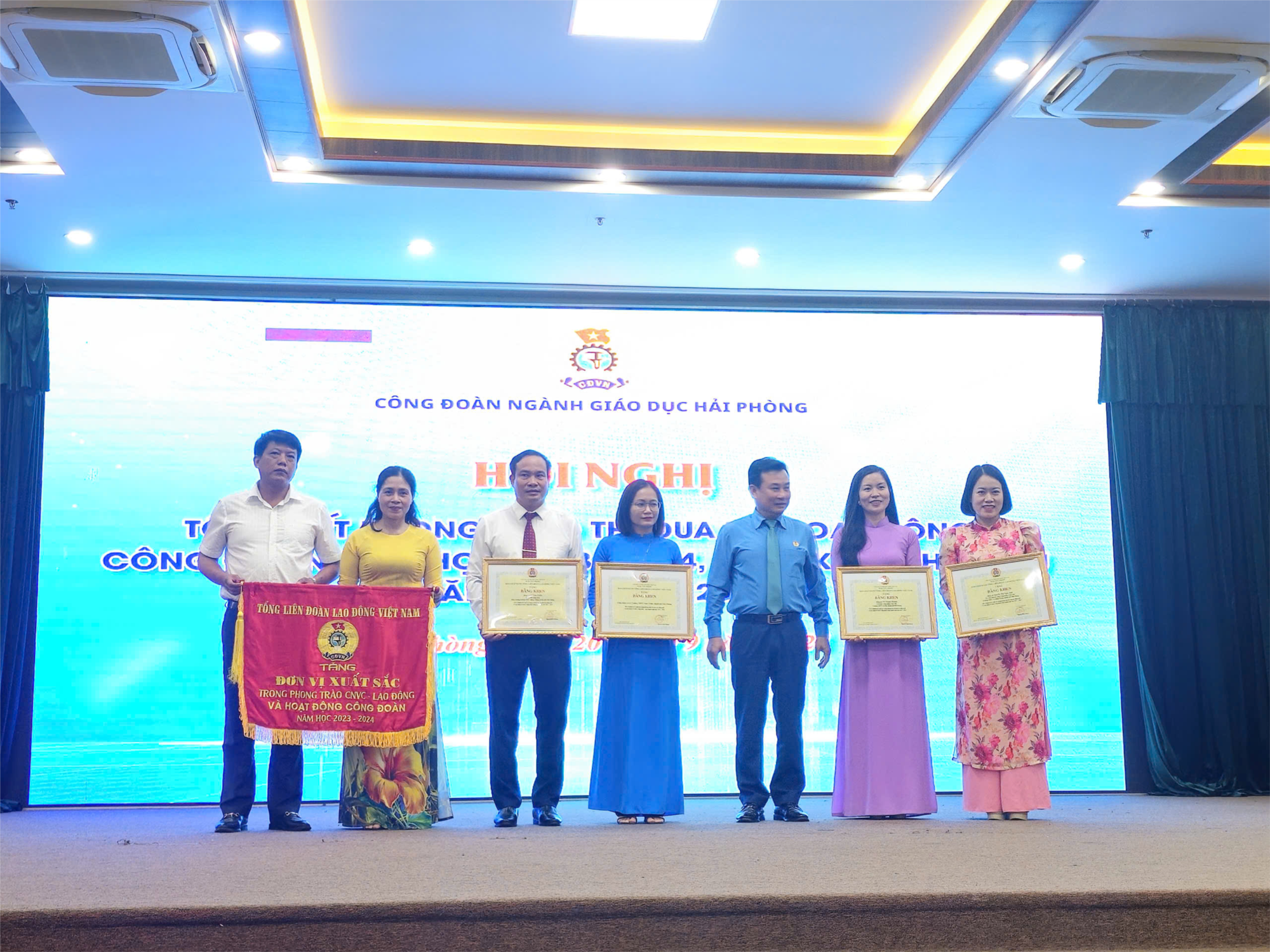 Nhân dịp này, có 1 tập thể nhận Cờ thi đua và 2 tập thể, 3 cá nhân nhận Bằng khen toàn diện của Tổng Liên đoàn Lao động Việt Nam; 2 tập thể nhận Cờ thi đua và 7 tập thể, 12 cá nhân nhận Bằng khen toàn diện của Liên đoàn Lao động thành phố. Nhiều tập thể, cá nhân nhận Bằng khen Chuyên đề "Dạy tốt - Học tốt" năm học 2023-2024; Giấy khen Công đoàn ngành. Công đoàn ngành cũng biểu dương các em học sinh là con em cán bộ, giáo viên trong ngành Giáo dục có thành tích xuất sắc trong năm học vừa qua.