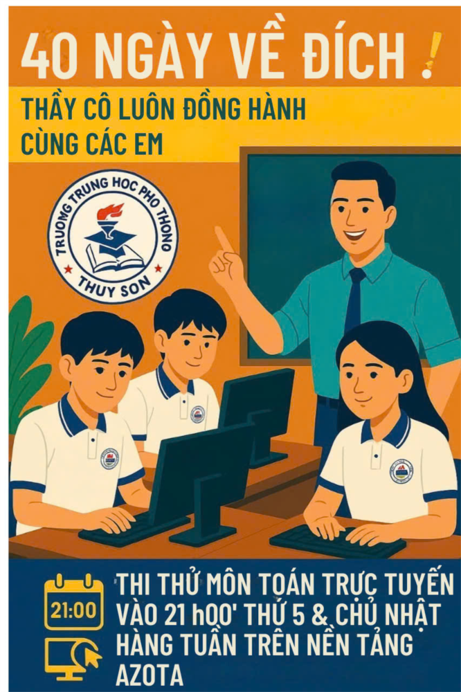 📚 Đặc biệt, để tạo điều kiện tốt nhất cho các em làm quen với cấu trúc đề thi và rèn luyện kỹ năng làm bài, các thầy, cô giáo trong tổ Toán- Tin trường THPT Thủy Sơn tổ chức kỳ thi thử môn Toán trực tuyến trên Azota định kỳ vào 21h00’ thứ Năm và Chủ Nhật hàng tuần.