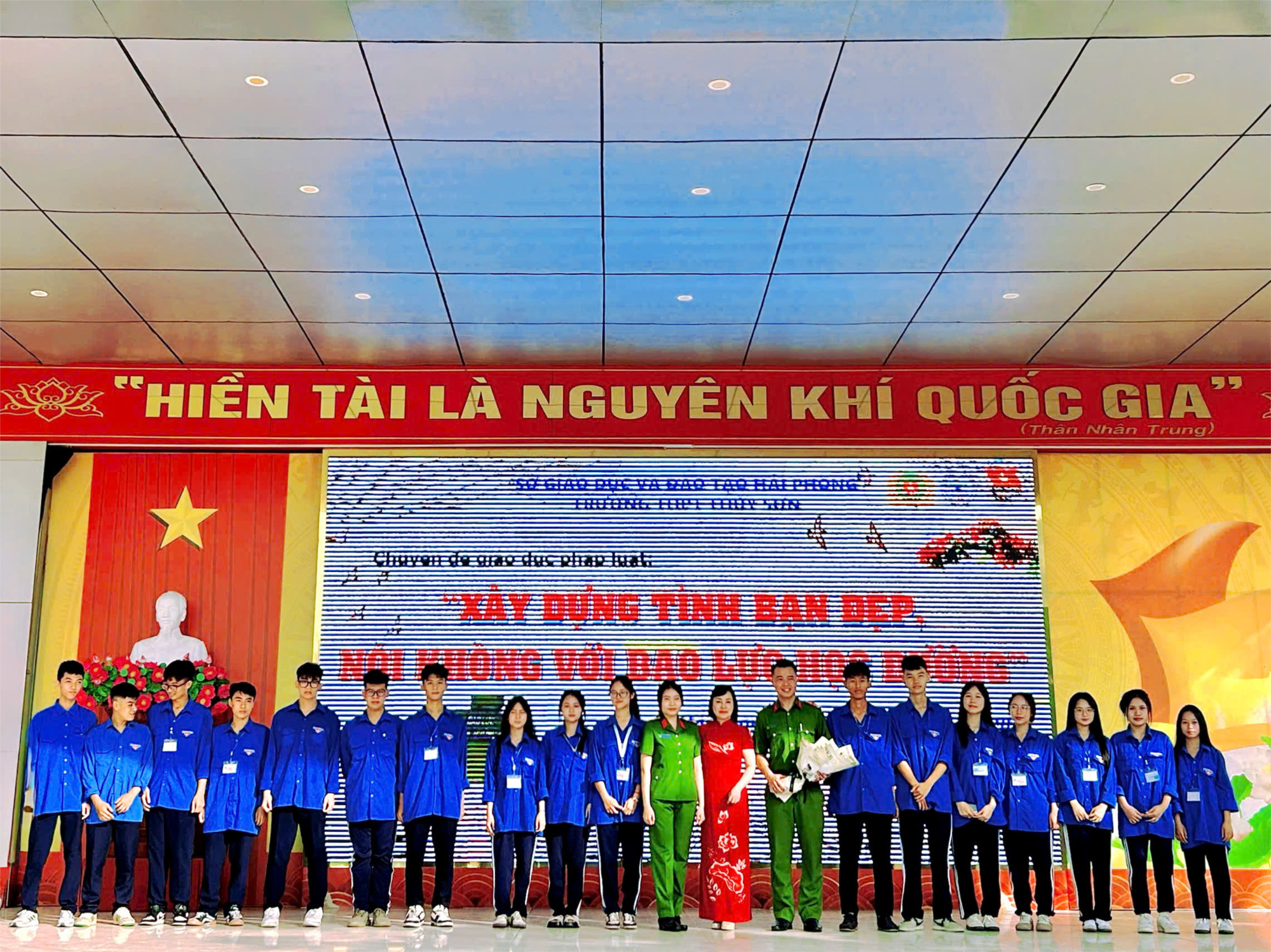 Nhằm giúp học sinh hiểu rõ hơn về pháp luật, xây dựng kỹ năng ứng xử văn minh, biết yêu thương – chia sẻ – tôn trọng lẫn nhau, sáng ngày 13/10, Trường THPT Thuỷ Sơn phối hợp với Công an phường Thuỷ Nguyên tổ chức chuyên đề giáo dục pháp luật với chủ đề: