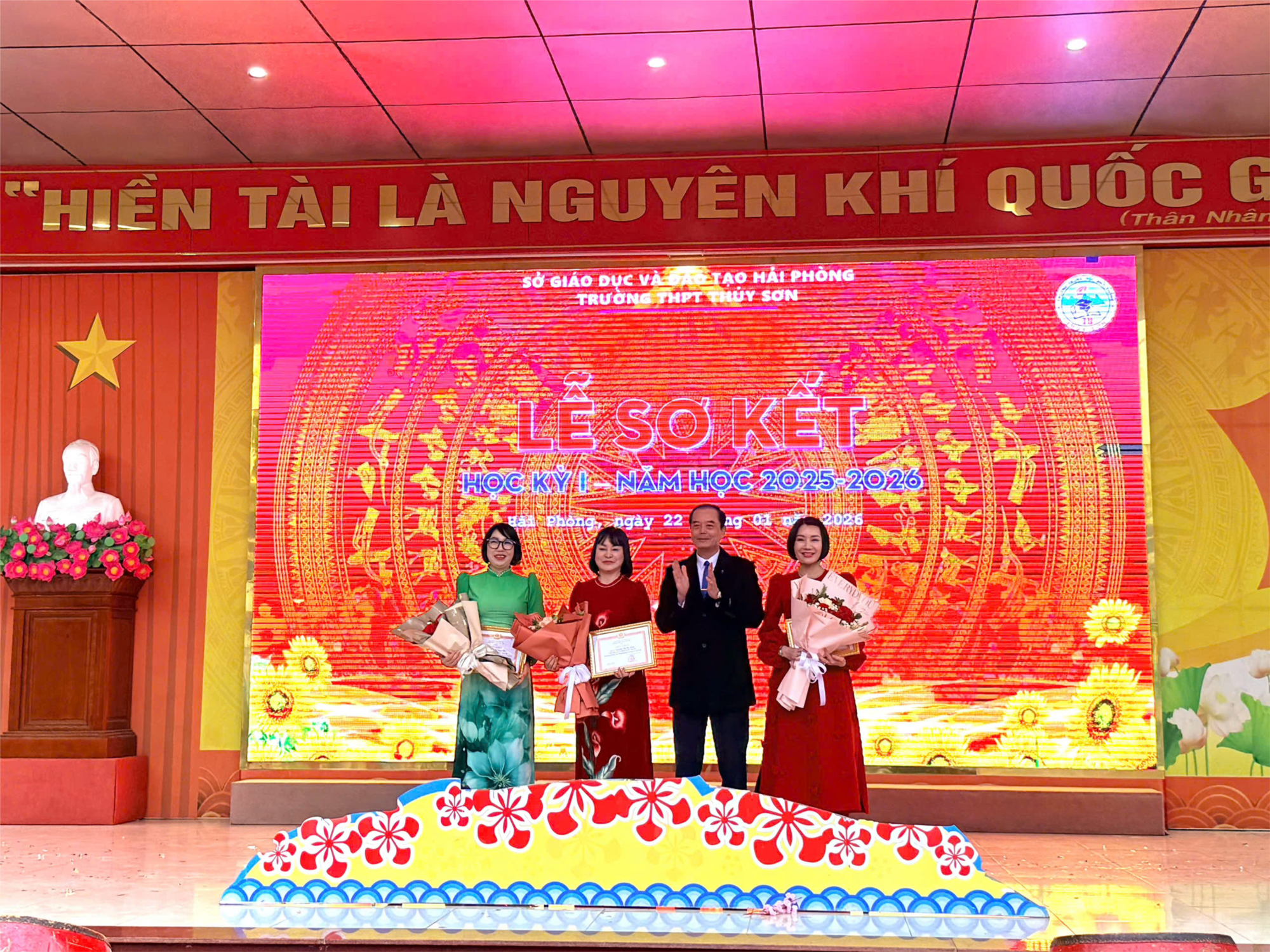 💥 Sáng ngày 22/1, Trường THPT Thuỷ Sơn đã long trọng tổ chức Lễ sơ kết học kì I năm học 2025–2026 trong không khí trang nghiêm, ý nghĩa, với sự tham dự của các đồng chí lãnh đạo Sở Giáo dục đào tạo Hải Phòng, đại diện lãnh đạo phường Thuỷ Nguyên, Công an phường Thuỷ Nguyên, Ban đại diện CMHS, Ban Giám hiệu, toàn thể cán bộ, giáo viên và học sinh nhà trường.