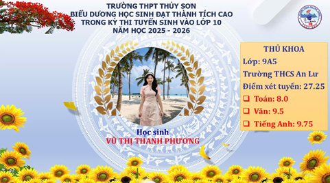 🎉 VINH DANH TOP 3 HỌC SINH ĐẠT ĐIỂM CAO NHẤT TRONG KỲ THI VÀO LỚP 10 THPT THUỶ SƠN NĂM HỌC 2025 - 2026 🎉